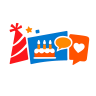 Playful designs with bright colors, fun fonts, and celebration energy.